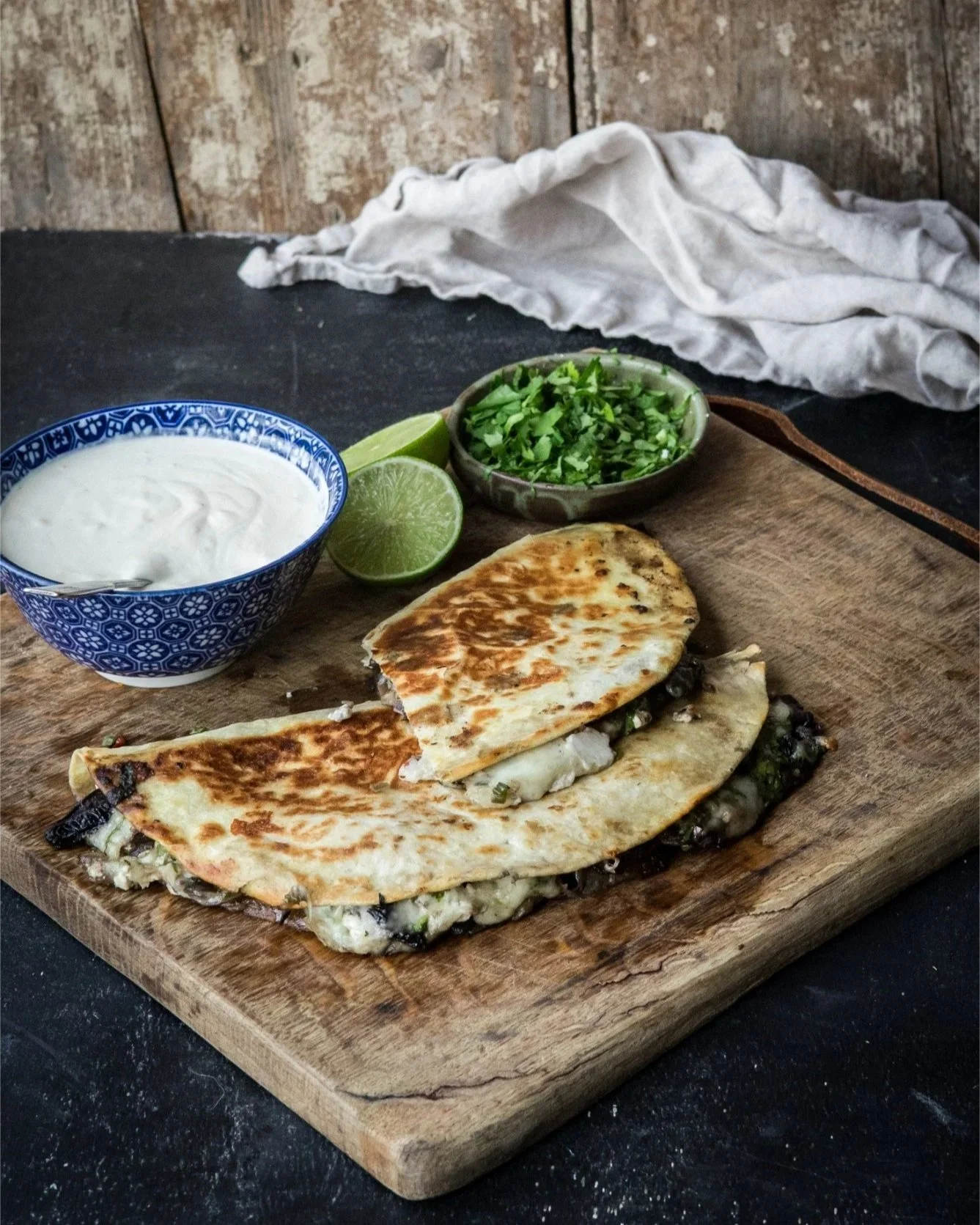 Make-ahead or storage: The mushroom filling can be made up to 2 days ahead and stored in the fridge. Assemble and cook the quesadillas just before serving.