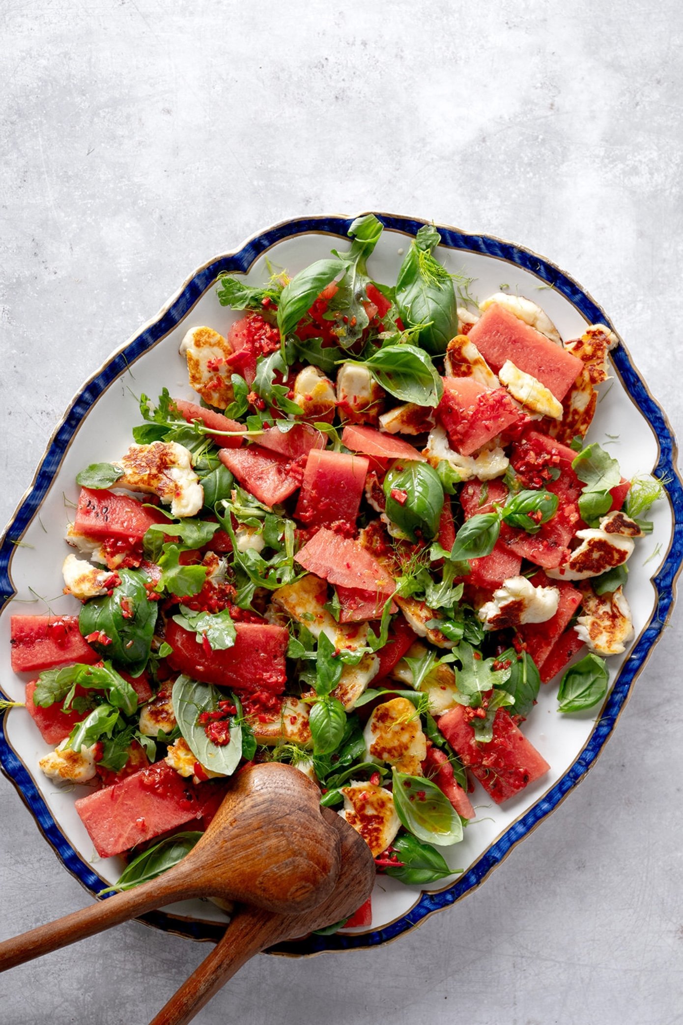 Watermelon & Halloumi Salad with Herbs & Chilli-Lemon Dressing